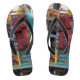 The artwork on these wide strap Flip Flops is an original photograph by ZoeSPEAK of a charming little shop in Key West, Florida. It's a colourful scene, with arts and crafts wares, even cool skulls, in many shapes and colours displayed outside the aqua blue clapboard shop. Yellow, red and white trim complete the palette. The boutique is on a shady street, but the bright sunlight of Key West can be seen just around the corner.