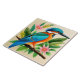 Illustration of a vivid kingfisher bird resting on a branch, intertwined with lush leaves and flowers, presenting a tasteful blend of natural beauty and artistic design.