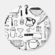 This Kitchen and cooking themed pattern comes from a drawing excersize in which I sat down and painted as many items from the kitchen from memory as I could. The end result had a sort of retro feel to it, and I think it looks lovely on a set of mugs