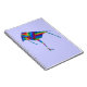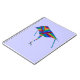 Photograph of a colourful kite flying against sky-blue background. Background colour customisable.