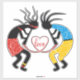 Colourful Kokopelli figures love Cut Vinyl Sticker. It features two black Kokopelli figures one male an one female in red, yellow and blue clothes and a red heart. The word love in red is placed in the heart