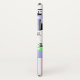 Pretty iPhone case, with whimsical graphics of colourful ladybugs and blue polka dots, on a white background. A pastel striped pattern decorates the bottom of the case, with a light blue band, as a border between the two backgrounds. Black text, on the band, is fully customisable to suit your needs. Great gift idea.