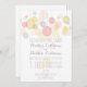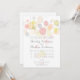 A wedding invitation featuring a colourful lanterns illustration and grey text.