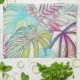 Watercolor Painting of few very large tropical leaves from tropical plants. The leaves are very different in shape and size, and the colours used in this watercolor are mostly pastel colours, like pink, blue, green, teal colour leaves. This design shows a rich, luxurious tropical foliage vegetation.
