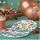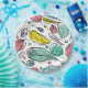 Hand drawn leaf pattern for birthday party, white, pink, blue and yellow.