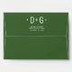 Colourful leaf print and initials moss green wedding envelope. The outside of the envelope is of green colour with your initials and address on the flap in white. The inside includes a colourful leaf print pattern. If you want an envelope liner you can delete the leaf print and use the one available in our "leaf print" collection.