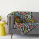 Colourful leaves pattern in rainbow colours custom modern throw blanket design that features a colourful pattern with leaves on black.