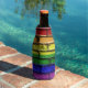 Colourful LGBT rainbow pride flag brick wall Bottle Cooler