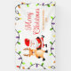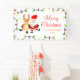 Cute Christmas banner features a Santa and reindeer with colourful light bulbs frame on a white background. Personalise it with your name.