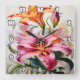 Colourful Lily Blooms on White Background Square Wall Clock