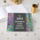 This family reunion guestbook design features a colourful pattern of lines coloured various colours, along with a customisable year and family name.