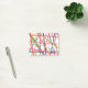These Post-It notes have a geometric design of scattered lines in floral colours – shades of pink, orange, yellow, blue, and green.