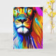 Birthday card. AI generated colourful lion artwork black card. geneartivecontent