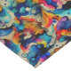 This is a colourful multicolored blue, violet, red, yellow, orange, black and cyan abstraction in liquid ink on a light beige background.