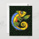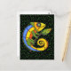 Image is my original painting. This colourful abstract lizard is hanging on a branch with a large leaf at the end. He is done in greens, blues, yellows, and oranges. See my store Art by MAR for matching products with this design.