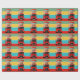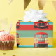 Wrapping paper (gift wrap) using strong bands of colour and a photo of the iconic double-decker bus of London photographed in the mid 1990's.