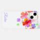 Pretty iPhone case done in white with graphics of colourful four leaf clovers, across the top. Personalise the custom text, for yourself or as a great gift idea for her.