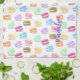 This cute macarons pattern kitchen towel features whimsically arranged macarons in a variety of colours - personalise with her name - by katz_d_zynes