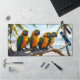 Add some colour to your desk with this colourful parrots desk mat! This quality desk mat is 31.5" L x 15.5" H. It features four colourful macaw parrots in a tree at the ocean beach. Perfect for that nature lover.