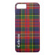 Great looking iPhone 7 case done in a traditional Scottish tartan plaid, in the colourful MacPherson family plaid. White old world style text running vertical up the left side is ready to personalise. Perfect way to protect your smart phone, and makes a great gift idea.