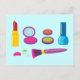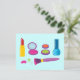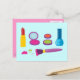 This bright and colourful makeup illustration features an assortment of beautiful cosmetics like red lipstick, blue nail polish, orange and lime green eyeshadow and hot pink blush and a pretty purple brush! This cosmetology make-up art is the perfect gift to buy for a cosmetologist, makeup artist, beauty school student or anyone who loves bright bold retro 80s neon colours and fun original artwork!