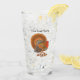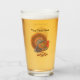 This glass tumbler for beverages has a colourful male turkey with a fanned out tail standing in a pile of Autumn coloured leaves. Customise your text with the template.