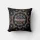 Beautiful Namaste Colourful Mandala throw pillow in black.