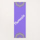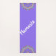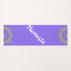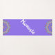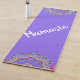 Pretty purple yoga mat, with graphics of a colourful mandala on both ends. Namaste, in custom white text, across the middle, is ready to personalise to read what you want. Same design is featured on both the front and backside of the mat.