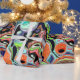Blue, red, lime green, brown, purple, teal and turquoise birthday gift wrap.