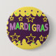 This button features a lively design of a banner bearing the words Mardi Gras in Mardi Gras colours on a yellow background. Perfect for Mardi Gras celebrations and parties.