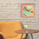 Enjoy your margaritas! A margarita, avocado, pepper, guacamole and chips create a fun and whimsy design. The background colours are a combination of coral and coral/yellow texture on a peach coral background. Other colours include green, lime green, red and turquoise blue. A thick black serpentine curvy line outlines the art. This design is original art by Phyllis Dobbs and coordinates with other products in this store.