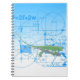 A fun and colourful spiral notebook that has an illustration of a green lizard standing on a paper filled with mathematical equations and geometric designs.