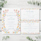 Enhance the charm of your wedding reception with these sophisticated and stylish botanical themed wedding menu cards. Decorated with delicate light blue calligraphy script and bouquet intertwined with colourful pastel wildflower and meadow flower blooms.