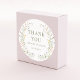 Immerse yourself in the classic charm of our bohemian wedding thank-you round stickers, adorned with a delightful wreath of colourful meadow wildflower blooms personalised with the names of the bride and groom in dusty green minimalist calligraphy script. Ideal for summer or autumn outdoor garden celebrations.