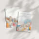 A colourful and modern Mediterranean wedding Save the Date featuring a beautiful watercolor hillside and coast landscape in pink, blue and orange on both the front and reverse.