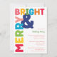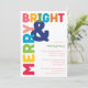 Capture the joy and magic of the holiday season with this unique and festive, colourful merry and bright holiday party invitation. Its simple yet fun design features a rainbow colour palette of red, green, yellow, blue, orange, and pink, creating a vibrant and cheerful atmosphere. The creative and minimalist approach, with bold typography, adds an original and trendy touch. Perfect for children and kids at heart, this design embraces a light and casual feel, spreading happiness with its cheerful wording. Celebrate December in style with this delightful greeting!
