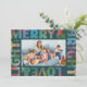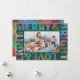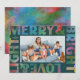 A rainbow of festive hues light up this teal, modern text frame holiday card with the wording "Merry & Bright Love & Light." This colourful seasonal greeting card features simple and easy to edit family name text and space for your best landscape photo of the season. The matching backer adds to the feeling of jubilation but can be replaced with another photo or remove it and add more personalised text for a longer message to send to family and friends.