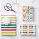 Colourful Merry and Bright Striped Polka Variety 3 Wrapping Paper Sheet