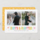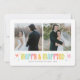 Celebrate your first Christmas as husband and wife with this festive holiday card. The card features the words "merry & married" in colourful letters surrounded by snowflakes. It has space for two photos as well as your names and the year.