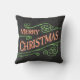 A hand sketched chalkboard design, accents a a bright Merry Christmas, on this vintage looking cushion, making it a perfect accessory for your home decor during the holidays.