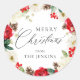 Watercolor Merry Christmas Round Sticker designed with colourful greenery and red flowers. Most lettering is editable - click the "Customise Further" button to edit. Matching items in our store Cava party design