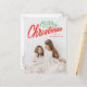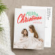 Cute, modern holiday postcard featuring "Merry Christmas" in a red and green hand-lettered script overlay. Personalise the front of the trendy holiday postcard by adding your photo and name. The back of the holiday postcard features your return address, an additional photo, and a custom message.