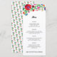 This beautiful and colourful wedding menu has easy to edit text boxes, a colourful, modern take on traditional Mexican embroidery, and the long skinny format that is easy to tuck into folded napkins.