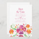 Capture the essence of celebration with our "Colourful Mexican Floral Fiesta Save the Date Card." This stunning card features a crisp white background adorned with a burst of lively, hand-painted watercolor flowers in shades of orange, red, and purple gracing the lower half. The top portion elegantly showcases your essential save the date information in a beautifully contrasting dark text. This design strikes the perfect balance between sophistication and festivity, making it an ideal choice to announce and set the tone for your upcoming special day.