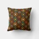 Colourful mid-century modern, geometric patter with a brown background. Groovy retro pillow design.