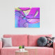 Bright and colourful psychedelic 3D splashing water bubble globules in a mix of purple, pink, blue and green. A modern minimalist abstract canvas print to brighten up any room.