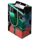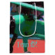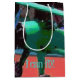 The colourful design on this medium Gift Bag is an original photograph by ZoeSPEAK of a model aeroplane. The plane is sea foam green, with a cornflower blue propeller on a black mount, and black tires. There is an aqua blue band at the edge of a salmon pink floor. The plane's wing cuts a diagonal line across the top of the photo, against a warm dark grey background. There is optional text (I can fly!) which is set for you to personalise or delete if you prefer. Little kids and big kids who love to fly will love this model aeroplane design.