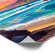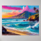 A vibrant, modern abstract painting depicting a beach landscape, where bold, swirling colours evoke the movement of waves crashing against the shore. Bright turquoise and deep blues represent the ocean, while splashes of warm oranges, pinks, and yellows symbolise the setting sun casting its light across the sand and water. The abstract forms blend together in a dynamic, fluid style, capturing the energy and tranquillity of the seascape. Loose brushstrokes and layers of texture create depth, allowing the viewer to feel both the calm and motion of the beach scene.