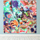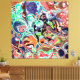 Orange, blue, red, green, black, teal, turquoise colourful burst of colours art.