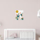 A playful pattern of geometric shapes forming an abstract landscape in a soft muted colour palette of teal, mustard, coral, blush, and moss.